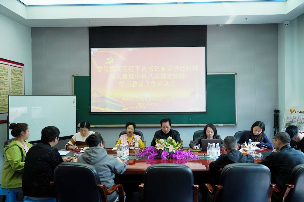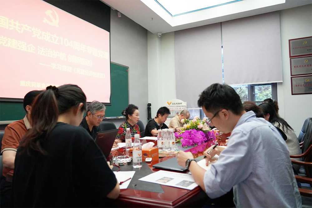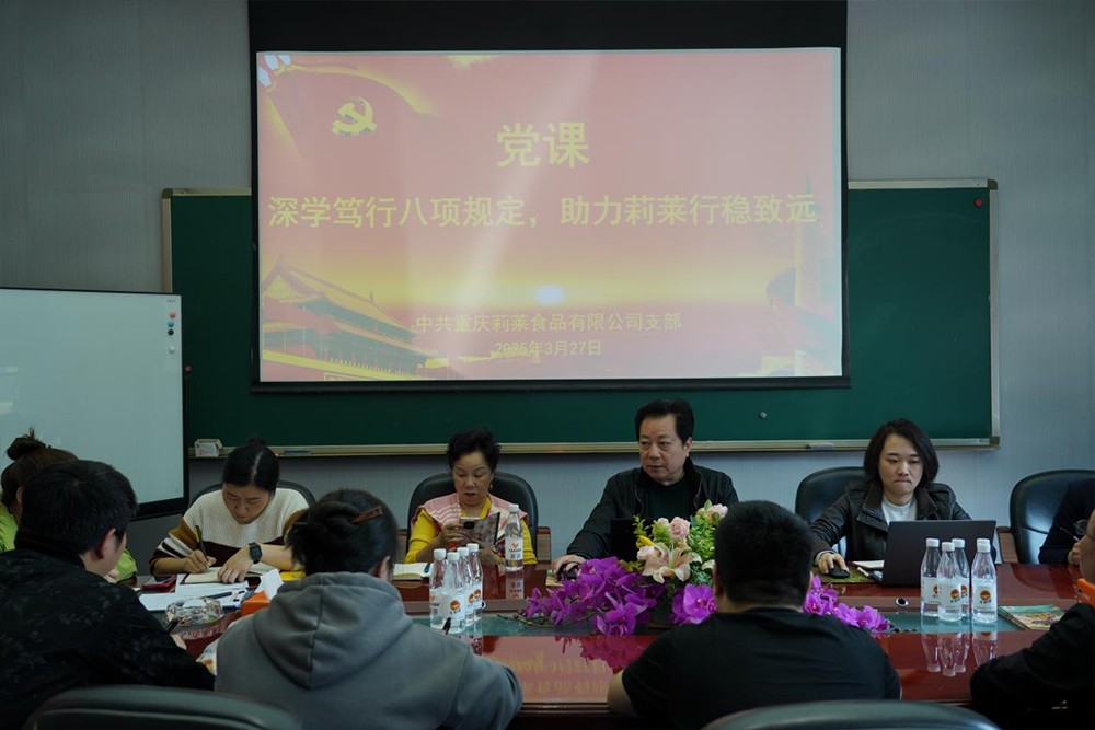 人文關懷 員工風采 黨政工建設 社會責任 員工風采 黨政工建設 社會責任 Party construction 黨政工建設 2025-11-11 黨建強企 法治護航 創新驅動-慶祝建黨104周年專題黨課 2025-11-11 學習貫徹習近平總書記重要講話精神暨中央八項規定精神學習教育啟動會 2025-11-11 深學篤行八項規定,助力莉萊行穩致遠-專題黨課 2025-11-11 2024年度組織生活會暨民主評議黨員大會 2025-11-11 共促黨建引領企業發展-赴重慶德莊實業(集團)有限公司參觀交流 2025-11-10 重慶莉萊食品有限公司開展黨課大講堂活動